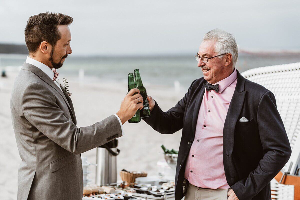 Wie bereits erwähnt, die Hochzeit von Marina & Karsten fand an einem Montag statt. Ich reiste also bereits am Sonntag an. Da ich den Tag zuvor bis nach Mitternacht eine Hochzeit begleitet hatte, trat ich meine Anreise nach Rügen nicht ganz so früh an. Aber immer noch früh genug, um gemeinsam mit dem Brautpaar und dessen Familie in Göhren an der Strandpromenade zu Abend zu essen. Da mich die gesamte Hochzeitsgesellschaft – okay, so viele waren es nicht – wie einen wirklich guten Freund behandelt hat, fühlte ich mich von Anfang an pudelwohl. By the way, genau diese Wohlfühlatmosphäre ist wohl das Geheimnis hinter richtig tollen Hochzeitsfotos.