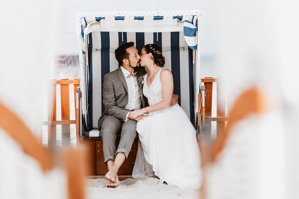 „Am Ende ist es dann die Insel Rügen geworden…“ Eigentlich wollten Marina & Karsten ja auf den Seychellen heiraten. So jedenfalls sind sie auf mich aufmerksam geworden. Der Termin stand schon fest und ich war zu dieser Zeit ohnehin wegen einer anderen Hochzeit im besagten Inselparadies. Aber dann haben die beiden sich umentschieden und beschlossen, auf Rügen zu heiraten. Wichtig war Marina & Karsten vor allem, dass es eine ganz intime Hochzeit am Strand wird – in ganz kleiner Hochzeitsgesellschaft. Und sie wollten mich als ihren Hochzeitsfotografen unbedingt dabei haben. Da die beiden einen Montag als ihren Hochzeitstag auserkoren hatten, war das zum Glück sogar machbar. Denn an den Wochenenden war ich als Hochzeitsfotograf bereits komplett ausgebucht.